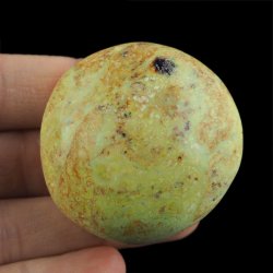 Opal zielony w formie polerowanego otoczaka, pochodzący z Madagaskaru, o wymiarach około 49 x 47 x 29 mm. Kamień został wypolerowany ze wszystkich stron, co podkreśla jego błyszczącą powierzchnię i naturalną, zieloną barwę. Forma otoczaka sprawia, że jest przyjemny w dotyku i dobrze leży w dłoni.